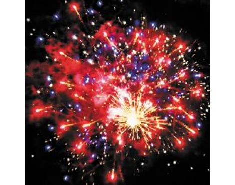 11-12. Выстреливает одновременно: Свистящие змейки. Красно-сине-желтая сфера (пион) и облако треска (трещащий дождь). (55-70 сек., до 40 м)